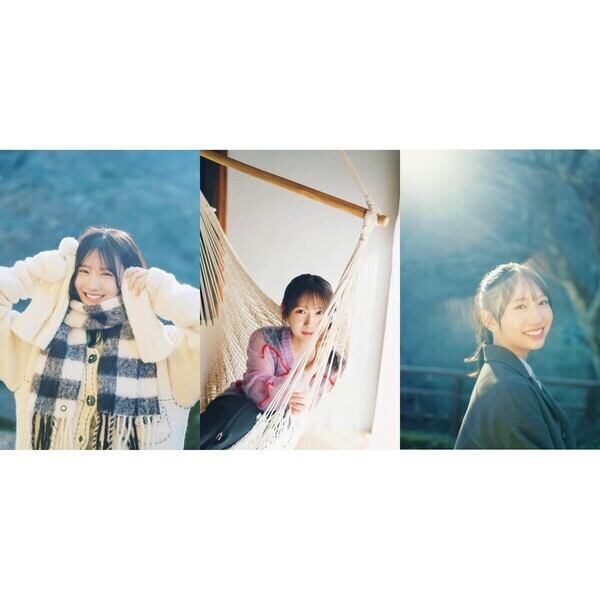 日向坂46からは五期生の松尾桜も登場。今回は松尾の圧倒的なビジュアルをストレートに収めるべく、白を基調となるスタジオにて、透明感あふれる衣装を纏い撮影を行った。光に照らされ儚く物憂げ見える表情や決心づいたかのような鋭い表情など、さまざまな視点で松尾桜の美しさを切り取った。また、広大な冬の公園でスキップをしたり、褐色の橙色のマフラーを巻いて微笑んでみたりと楽しげに過ごす彼女の表情も見ることができる。